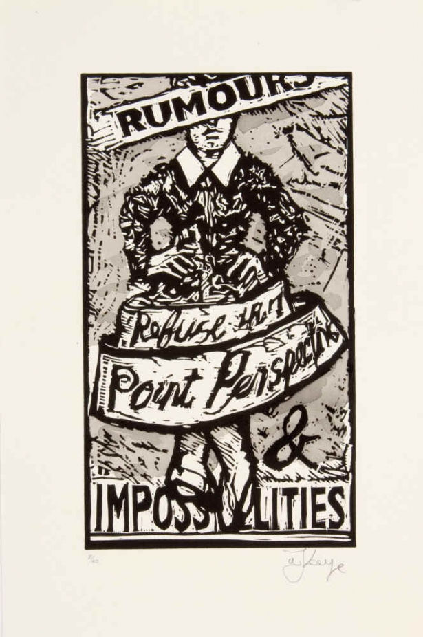 Linocut with hand painting, 47.5 x 32 cm. /18.7 x 12.6 inches, edition 40, signed and numbered, 2010